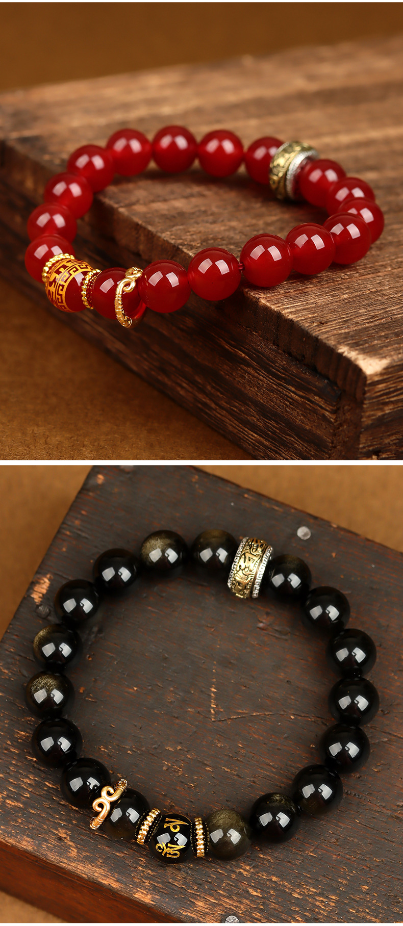 Material:Available in 7 styles — Black Stone, Natural Black Agate, Natural Red Agate, Natural Rainbow-Eye Obsidian, Natural Gold Obsidian, Natural Silver Obsidian